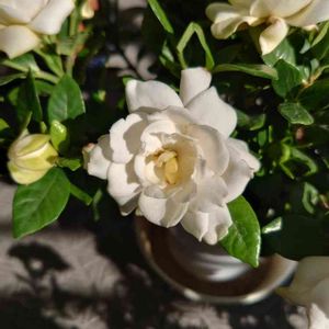 梔子が2〜3輪咲き始めました✨ ベランダが甘い香りで満たされています💗 (ლ˘╰╯˘).。.:*♡