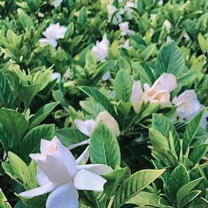 梅雨の晴れ間に、クチナシの花が咲き始めてました。 花言葉は「喜びを運ぶ」だそうです🍀 すでに甘い香りが漂っています♫