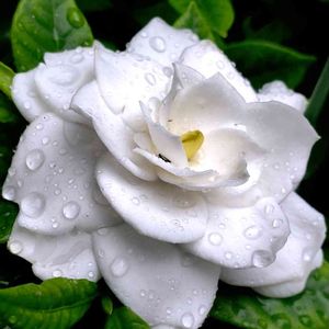 おはようございます😊 八重のクチナシの花に ようやく出逢えました♡ 妖艶な白 香りは濃く甘く~ おさんぽコースにて🚶♀️🐾🐸 さんぽ途中から雨が☂️