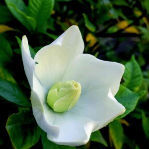 クチナシの花 帰宅後 庭パトしてたら 咲いてるーv(。・ω・。)ィェィ♪ 何年も葉っぱ🌿だけでうちでは 咲かないのかと思ってました😭 良かった♥️(*^_^*)