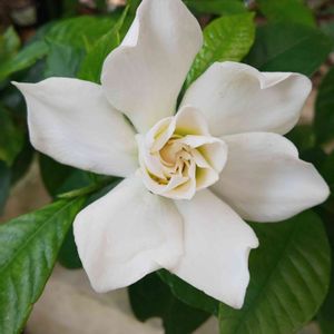 こんにちは😊クチナシ 八重咲き。コンビニ途中の遊歩道にて。梅雨入り☂️の中でもしっとり系のお花たち見るとほっこりしますね👍😃🎶