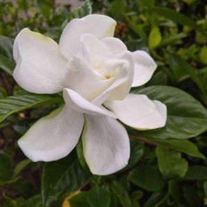 おはようございます^ ^ 明け方に雨が降ったようです☔️ すこ〜し暑さ楽です😊 今日のお花クチナシの花はまだつけてないですが青々とした葉がたくさん🌿🌿🌿