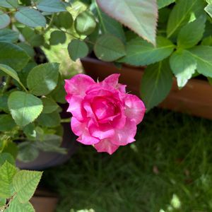 こんばんは♪ 今日は快晴?と思っていたら夕方にはパラパラっと🌦️ 午前は少し足を伸ばして園芸店を覗きましたがバンビオ苗も種類は少なめ💧 数ポットと宿根草を少々お連れして庭へ😉 久しぶりに寄せ植えも1つだけ…明日にでもアップしてみます😅 ①カレス。ウチに居ませんがフィネスと姉妹だそうですが、先日投稿のバリスタと同じく状態は良くなかったけど枝ぶりは気に入って先月迎えました。同じく葉を全むしりからのスタート💦 しっかり復活して綺麗な葉はフサフサで蕾もまずまず👌 最初の花です🌹 少し花弁少ない感じだけど可愛く咲いたかなぁ🥰 ②横顔。我が家で今1番テンション上がる場所⤴️🎶 狭〜い軒下➕仮設ビニール屋根に楽しみなバラを所狭しと😅 最近はここからの投稿が多発🤭 ③オレンジマザーズデイも途切れず咲いてくれて… ④極小ミニバラほほえみも ⑤カレスと同期のバリスタも🧡 2輪目が咲いたところです✨ 少し茶寄りになった気がします😌 今週もお疲れ様でした🌙