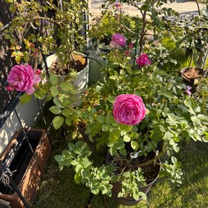 こんにちは♪ 気温は高くないけど晴れて気持ちの良い天気☀️ 午前は歯医者だったので午後からですが先週の天候被害のアカシアを処理まだまだやってます💦 一服がてら同じメンバーながら咲いてるバラを見て癒されて✨ ①先日のチャールストンはグラデーションがいい感じ😊 ②よく咲いてくれたカレスも咲いてる2輪と蕾が3つだけ😅 ③先日秋の1輪目を投稿したペッシュさんはもうひとつの最後も咲きました🙌 ほんと桃だなぁ🍑 ④コルデスのミニバラ、ラベンダーコルダーナ 小さいけど良い色合いです💜 ⑤11/3に投稿した寄せ植えです✨少しボリュームが出た程度ですが‥リーフのスクテラリアに小さなラベンダー色の花が咲いてます♪ ヒューケラのシルバーガムドロップは赤みを帯びてます😊 さてもう少しだけ頑張ります😉