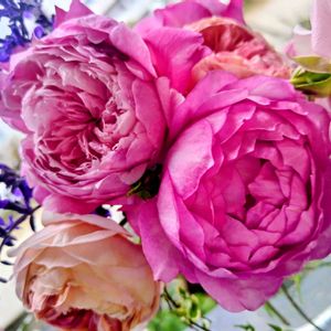 今夜から雨が降るらしいので、全開のバラさん達は一旦収穫してミニブーケ風に✨️ ポツポツ咲きでも色んな種類を集めるとけっこう豪華になります☺️