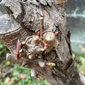 梅の花 古い大きな梅の木のそばから、 こんな若い枝が出ていました。 親木は、白い花なのに、 何と、こちらは、 はほんのり、ピンクがかった、 💕可愛い 色のお花です。 こんな事もあるんですね‼️ 良かった❣️