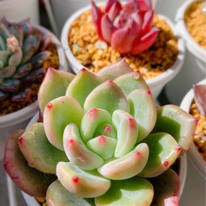 🍀シャーロット🍀 つやつや✨ムチムチ✨葉先ピンク✨でめちゃ可愛いです(๑♡ᴗ♡๑) 週末雨予報だけど水あげちゃった😅