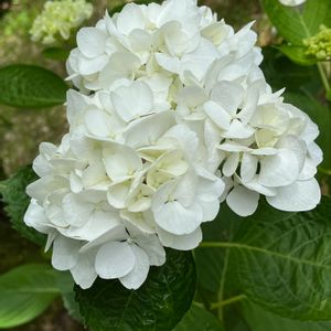 紫陽花 ホワイトダイヤモンド 完全開花前 樹形も綺麗で大きな株に育っていて、毎年たくさんの花が咲きますが、完全に開花する頃には花弁が茶色になってしまいます。 今も少し茶色になってしまっています。 なぜなのでしょう🥺 #西陽は当たらない #日照不足? #場所が悪い? #土が合わない?