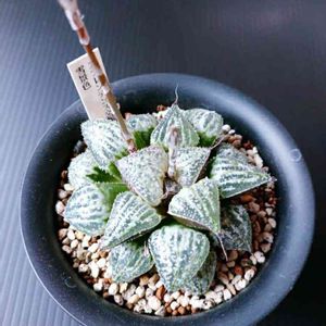 今日のハオルチア🍀は「ウルフ青木(ホワイトウルフ✕青木コントラストピクタ)✕氷麗(酒井スーパーホワイトピクタ実生特選)実生苗」です。 こちらはお店のものです。 掛け合わせて掛け合わせ。いつかオリジナルの品種を作れたらと思うけど、なかなか難しい環境なので、もう少し年を取ったらやってみよう! (*^^*)