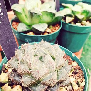 今日のハオルチア🍀は「ビロード(特ケバピグ×白青城)」です。 こちらはお店のものです。 昨日行ったHCで見かけた株。 この種にハマると取り返しがつかない?かもと、あまり所有していませんが、本当に色々な品種があって、目移りしますね。 (*^^*)