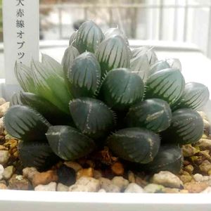 少し前に購入したハオルチアピグマエアです。 ポットに入ったままなんですが、いい加減植え替えてあげないと…と思ってます。 買ってきた時より窓の部分がツヤツヤしていい感じです👍