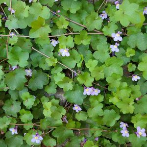 家の外溝で砂利が敷いてあるところに自生しています。 すみれを小さくしたような花が、いっぱい咲いてとても可愛らしいです。 追伸 花の名前をツタバウンランからシンバラリアに変えました。😄