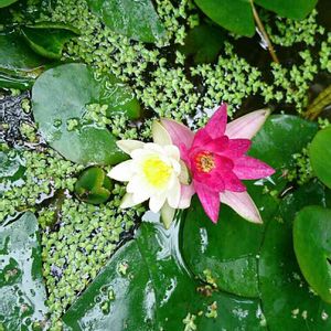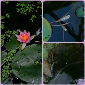 昨日 開花した姫睡蓮と メダカ♡♡ 右下は先日生まれた 子メダカ 体長1㎝弱の 可愛い子… 元気に成長中♪