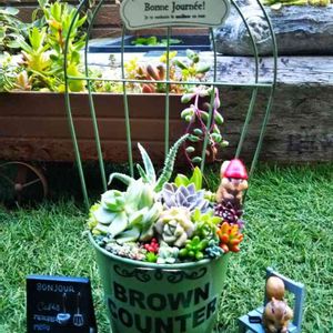 こんばんは~(*´∀`)💕 今日も寒くない(^∇^)🎵晴れていたから、気持ちよく過ごせましたぁ💕 今日は、お出掛けしていたんだけど、用事の時間を勘違いしていて、二時間程時間をつぶすために、園芸店に行ったの🎵 で、大きな木立アロエや、小さなアガベ、多肉さん達を狩りました🎵 あ、あと、このブリキのプレートもねΨ( ̄∇ ̄)Ψ💕 今日は、勘違い万歳🙌です❤️