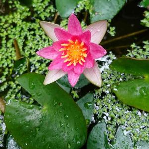 お久しぶりです(*'ω' *) 5月に買った3センチほどの睡蓮の球根が、立派な花を咲かせました٩(*´◒`*)۶ 名前はなんだったかな、、失念しましたが、太陽の出入りと共に小ぶりの花を開いたり閉じたりしていて可愛らしいです(*´ `*)