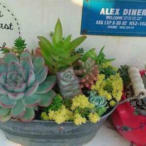こんばんは~(*≧∀≦*)💕 今日は、母の日でしたね🎵 大雨、豪雨~💦な一日。 お部屋の中から🎵 多肉の寄せ植えをプレゼントに作りました❤ 喜んでもらえたよ❤ ミクママちゃんに、プレゼントしてもらった、ソクモンちゃんと記念撮影❤