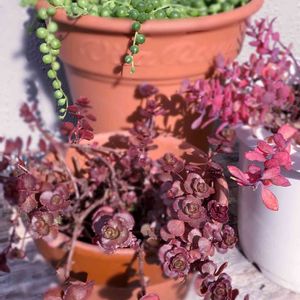 我が家のSucculent‧✧̣̇‧ 火祭が赤さを増してきたような~*ˊᵕˋ* ピンクベリーは横に広がらず 上に伸びるタイプなのかしら~? どうなんでしょうෆ͙⃛ෆ͙⃛