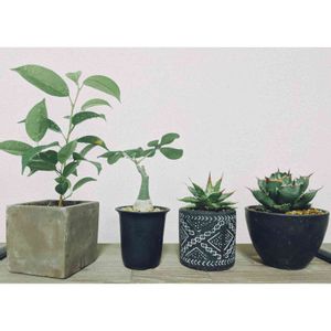 左から ■ベンジャミン ■アデニア・グラビア ■アガベ・ホリダ ■アガベ・チタノタ 姫厳龍 左端のベンジャミンは挿し木で増やしたもの。 一年で5 cmは伸びたと思う。 結構お気に入りの4つ。