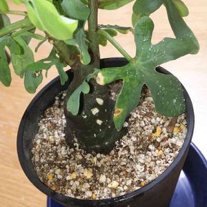 アデニアグラウカさん ここ1ヶ月以内で、ベランダにある棚の最上段(1.3mくらい)から2回落下… 風が強いのですよ… 恐らくお手々のような葉っぱが風をはらんで、大空へ飛び立とうとするも重力に捕らわれてあえなく落下でしょうか 胴体の傷が衝撃を物語ります 置場所を再考すべきなのでしょうが陽当たりの良い場所となると棚の最上段なのですよね 2度あることは3度ある… 置場所置き方考えないとですね