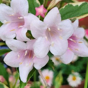 ①②斑入りハコネウツギ 花もかわいいけど ピンクの蕾がとってもかわいい~💕 ③④タニウツギ タグにはノリウツギと書いてあったけど タニウツギじゃないかなあ ⑤ピンクスズラン ますますかわいくなりました🩷