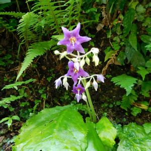 楽しみにしていた星型の花、イワタバコが咲きました🥰俯き咲きなので、ちょっぴり強引にこちらへ向いてもらって📸 かわいいなぁ!白花も買っておけばよかった😖 2枚め/ヤブレガサも開花中。毎度思いますが地味です😂