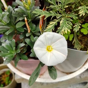 コンボルブルス白 待機苗のまま花が咲きました💦💦 早く植えてやらないと😅