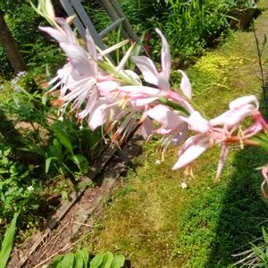 よくわからない感じで撮れたけど、ガウラ 白蝶草 絆という名前です。 東北の震災後に出た新種でした。 白に細い赤の縁取りが入ります。