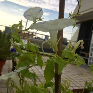 今朝はそんなに早く起きなかったのに、開いていなかった松風。普通の朝顔も少し折り目がついて、いつもと違う感じでした。曇天のせいかなあ。