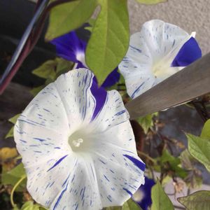 今朝の松風。やはり片方紺なので、もしかして片方の株は紺しか出ない遺伝子の変異株なのではないかしら…。去年友達のとこも紺しか咲かなかったのはそのせいかなあ。