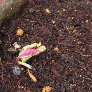 気温が下がったりで心配していましたが、変化朝顔の松風、今朝1つ目が発芽しました。茎までツートンカラーです。