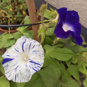 変化朝顔の松風、2本目が出ました。こちらはちらちらと模様入り。