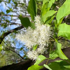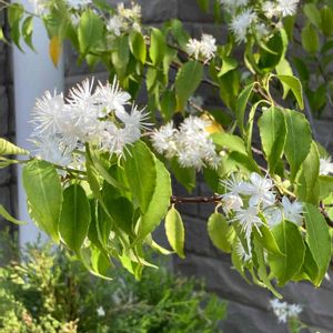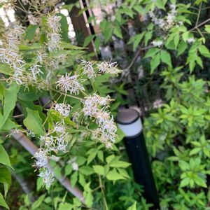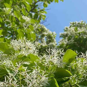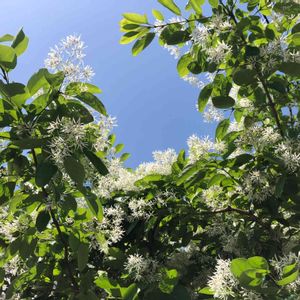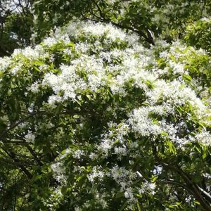 白い花と緑色の葉が朝陽に浴びて 気持ち良さそう🌈🌈🌈 ある地域では『あんじゃもんじゃ』 とも呼ばれてる〜🤗