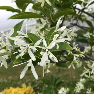 ナンジャモンジャの花 ヒトツバタゴ(一つ葉タゴ)が別名なんだけど、どちらにしてもインパクト有り過ぎなお名前😊 対馬と、東濃と犬山(木曽川流域)しか自生してないレッドデータブックに載っちゃう植物です。でもこれは、鵜沼駅の植樹です。見頃ですよ!