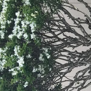 ヒトツバタゴ(←あってますか?) ご近所のマンションに2本素敵な感じでそびえて、白く花弁が分かれた繊細な花が、粉雪のように新緑の若葉にふりかかっています。 もし、ヒトツバタゴであってるなら、一年に数日だけ咲く花ということで、貴重なタイミングで出逢ったことになりますね。(自信ありませんが、Google検索すると有力みたいです) 「別名『ナンジャモンジャ』と呼ばれる木の代表種であるが‥、(名前を聞いたことあります〜🙋♀️) ナンジャモンジャとは、名前が分からない大木全般の総称であり🤣、特定の樹種を示すものではない」‥そうで、 地元の人気者の愛称ですって♪(๑ᴖ◡ᴖ๑)♪ 🗒️_φ(・_・ヘェェ〜