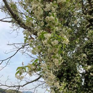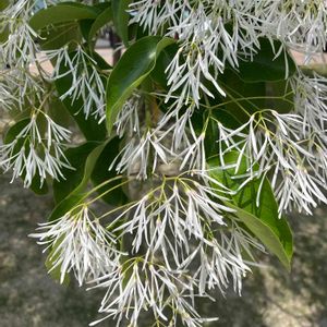 🌳ヒトツバタゴの白く細長い花が綺麗です 別名=ナンジャモンジャの木、海照らし 自生地では30mの大木もあるそうです 雪が積もったように見える真っ白な花は弱く風に飛ぶ 近くに水辺があると花びらが浮かび綺麗でしょうね✨✨✨ 対馬の鰐浦地区に自生地があり、日本最大3000本一度見てみたいです(^^)/♡ 5月花回廊のお花散歩より