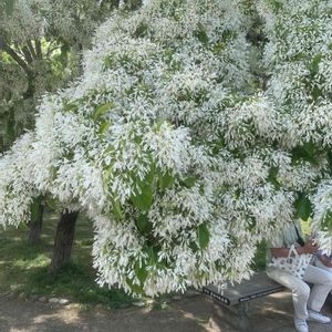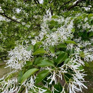 おはようございます😊 💠 ヒトツバタゴ 💠 別名;ナンジャモンジャの木 モクセイ科の落葉高木。 細かく裂けたような真っ白い花が 大きな樹一面に咲いてました。 花博記念公園鶴見緑地にて