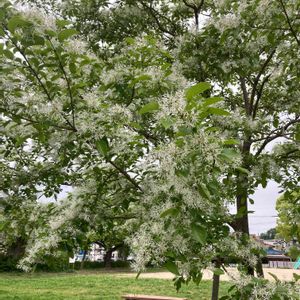 公園で木が白っぽくなっていました😃 レンズ先生に検索をした所「ヒトツバタゴ」と教えて頂きました🫡