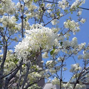 ナンジャモンジャの木 満開💕❤️ ヒトツバタゴが本名 ナンジャモンジャは こりゃなんじゃと わからない木に付ける名前ですって 知らなかった 面白いね( ^∀^)