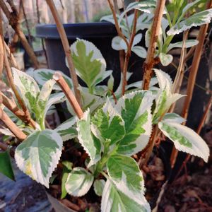 アジサイ ‘レモンウェーブ’ 20230401 F西中 古くからある斑入りのアジサイ 緑、黄緑、白、黄色が混ざり合う葉 斑入りだと花がない季節も楽しめる🎶