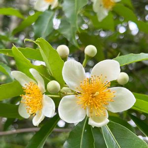 イジュ(伊集)🤍💛 見たかったお花が咲き始めました🎵 ツバキ科ヒメツバキ属 花期・5〜6月 ヒメツバキ(姫椿)ともいう。 以前はヒメツバキとイジュとを分けていたが、葉の鋸歯や毛の多少などのわずかな差異しかなく、同一の種と考えるようになったそうです。