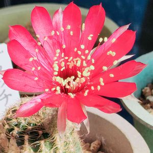 ブラッチーの花🌼 初めて咲きました(^ー^) 購入時札にブラッチーと書いてましたが、調べて見ても花の色がほとんどピンクしか出てこない(*ToT) ブラッチーは羅星丸、羅星丸で見ても花はピンク( ゜o゜) 名前が違うのかなぁ…… まぁいいけど🎵