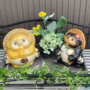 また タヌキが出没しましたよーー‼️ カエルちゃんを 従えていますよー🐸
