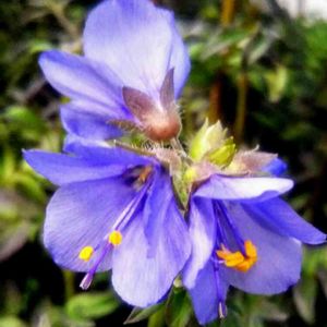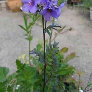 昨年八ヶ岳の花農家「花の小径」で買ってきたポレモニウムの花が咲きました 茎は30センチくらいあります