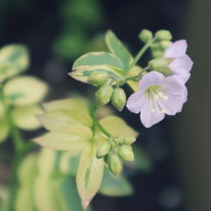 ポレモニウム ステアウェイ トゥヘブン💠 店頭ではあまり目立たず地味だったけど、連れ帰ってみたら斑入りの葉っぱと淡いブルーの小花がすごく素敵で大満足💙 が、何度チャレンジしてもピントが合わず😂 何故なのー😫