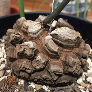 ジゴシキオス トリパルチタス マダガスカルのウリ科の塊根植物です。 扁平な丸い塊根から蔓を伸ばすやつですね。 同じジゴシキオスだとブベスケンスの方がよく見かけますが、こっちのトリパルチタスはレアらしく、GSでも数枚しか写真ありませんね。 イモの部分が成熟してくると、ひび割れてメロンパンみたいになるみたい🍈 なんか葉っぱからは虫が嫌がりそうなミントっぽい清涼な香りがします。 蚊除けのグリーンカーテンにならないかなって期待( ̄ー ̄)
