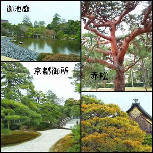 約500年間 天皇のお住まいとして使用された京都御所。いつの間にか 無料で 常時開放されていたなんて^^; 京都御苑内、沢山の松が 印象的です。特に、「御所透かし」という透かし剪定、美しくお手入れされた御所内 一際大きな赤松達の樹形は、芸術的で、優しさも感じ和みました (*´-`) ※ 右上の松は 京都御苑内公園の赤松です