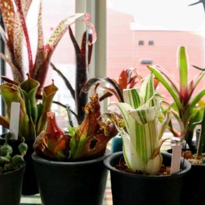 皆様、ご無沙汰しています。 クリスマスローズは絶賛夏越し中であまりネタもないので、今回はホヘンベルギアさんを上げておきます。 もう6年近く育ててるので、子株が出てきて、どんどん勢力拡大中です。🤣 pic1 カーラ 管理番号1-2-1ということで三世代目ですね。たくさんいるので活着したら、すぐに里子に出します。 pic2 サンドラズマウンテン これはお迎え株本体です。どんどん大きくなるんですが、花芽や子株は出てこないですね。 見事な黄緑ですが、上手く日に当てると紫になるはずなんで、加減が難しいです。やり過ぎるとコゲるし。😅 pic3〜5 レオポルドホルスティ うちの最大勢力で合計6株くらい居ます。順次里子に出してるのですが、それでもこの有り様。😂 一応、pic3はダンクローン株です。 pic4の通り子株は親株からは想像できない姿ですが、親株から外して育てると、ちゃんと壺型になってくれます。まぁ、外してから1年半位はかかりますが。 ちなみに我が家は屋内LED管理なのでタンク部分にカエルは住んでおりません。😄 某生産農家さんの外管理のタンクブロメリア系にはたくさんカエルが住んでました。