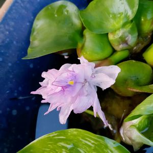 今日のお花 【ホテイソウ】 ミズアオイ科 スイレン鉢の中 花と葉陰にて メダカとタニシが 思いっきり夏を 気持ち良さげに 謳歌して…。 🏷今日のお花