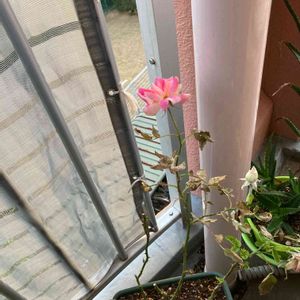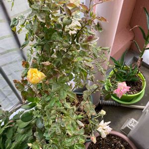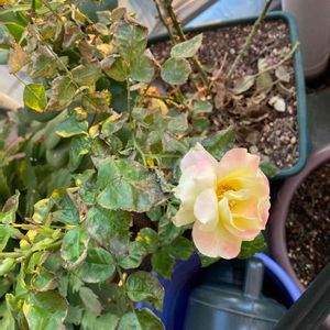 一番のお気に入りの宿根草は目立たないけどこのブルーの亜麻です。 風に揺れて大きくなりすぎなくて大好きです。 薔薇はシュクレ🌹 何故かこの子だけ虫が付いてしまいました。 🌱が美味しいのでしょうか😿