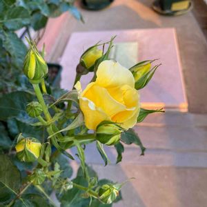 🏷️金曜日の蕾たち🏷️に❣️ 今日はちょっと曇り模様 こんなときは少し甘い優しいクリーム色の薔薇はいかがでしょう。 種から撒いてみたニゲラ ブルー💙かな?って思ったら白ですね✨でも可愛いかなぁ🎵 寒暖差がありそうなのでご自愛下さいね😃